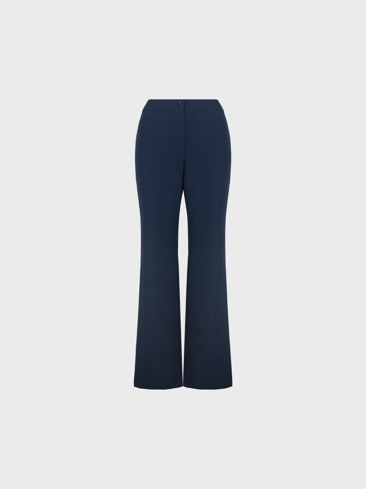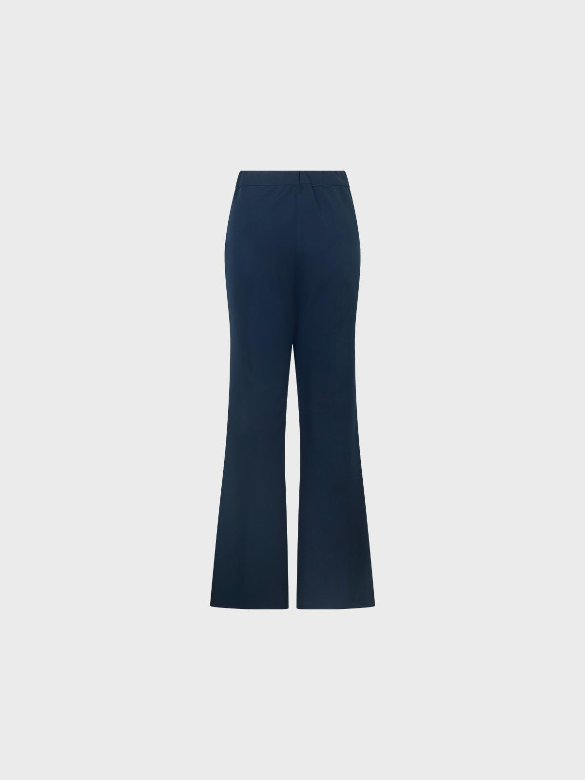 Pantalone in tessuto tecnico con fondo a trombetta, zip e bottone davanti