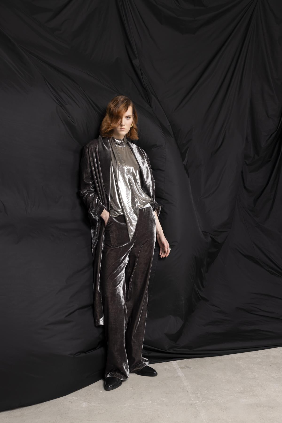 Pantalone in velluto martellato TascheFascetta liscia davanti ed elastico dietro