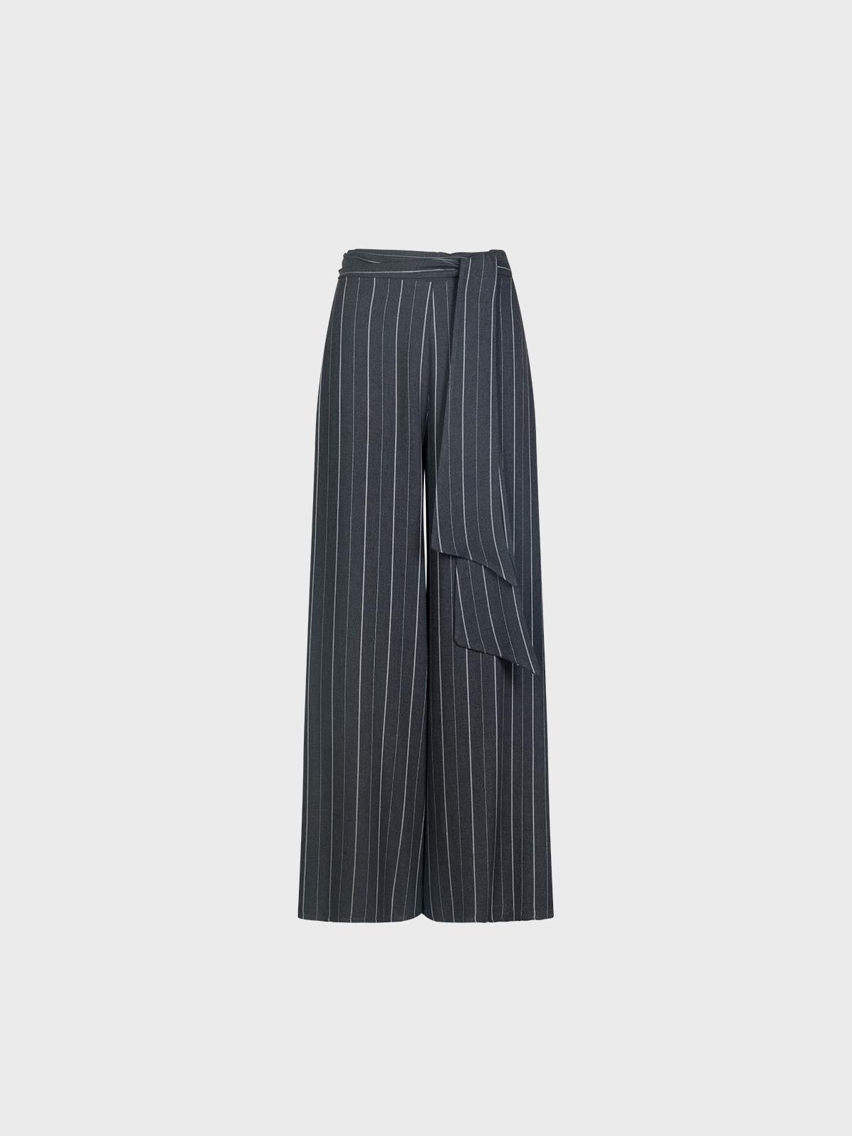 Pantalone palazzoViscosa gessataElastico dietroCintura da annodare