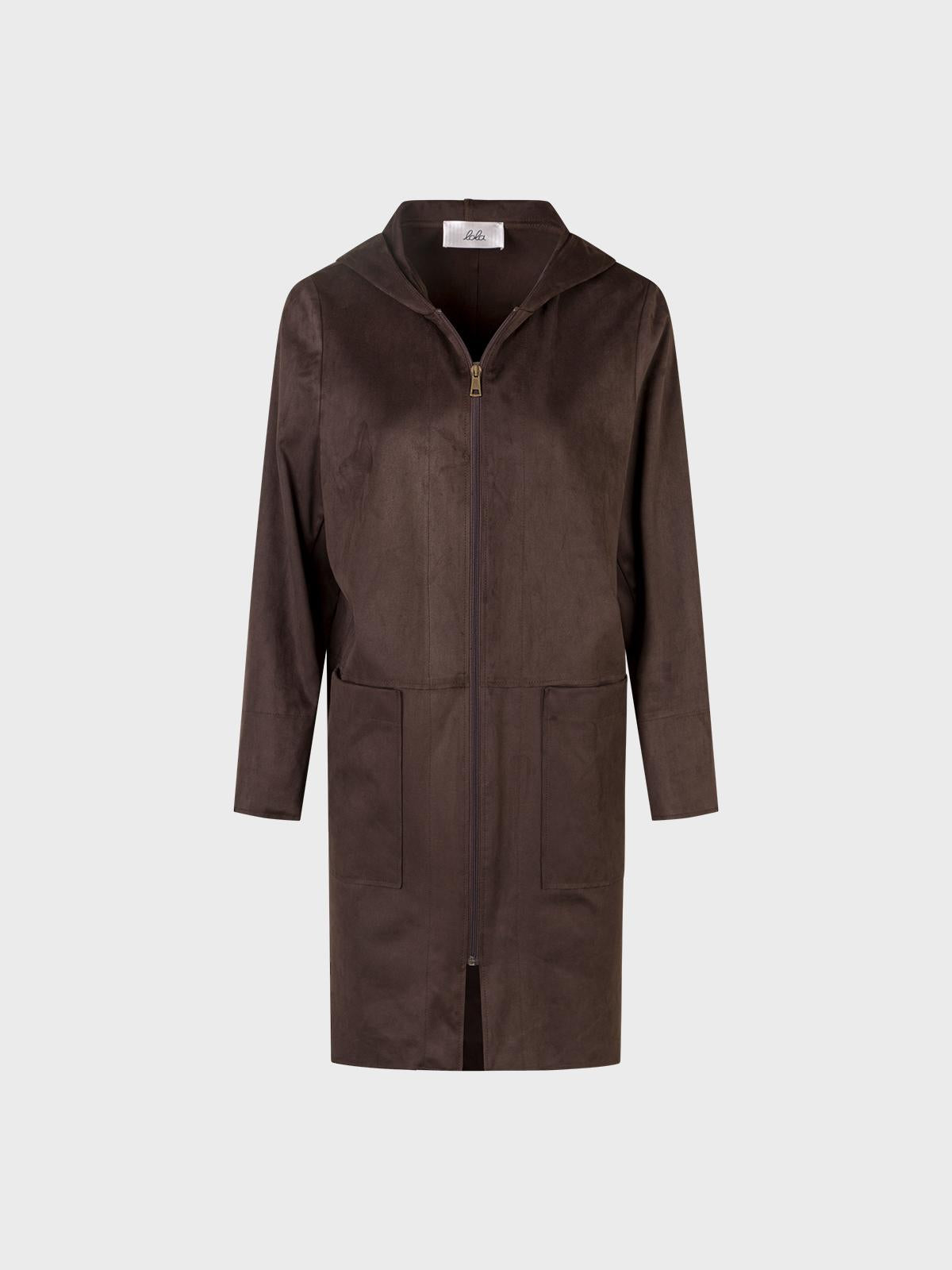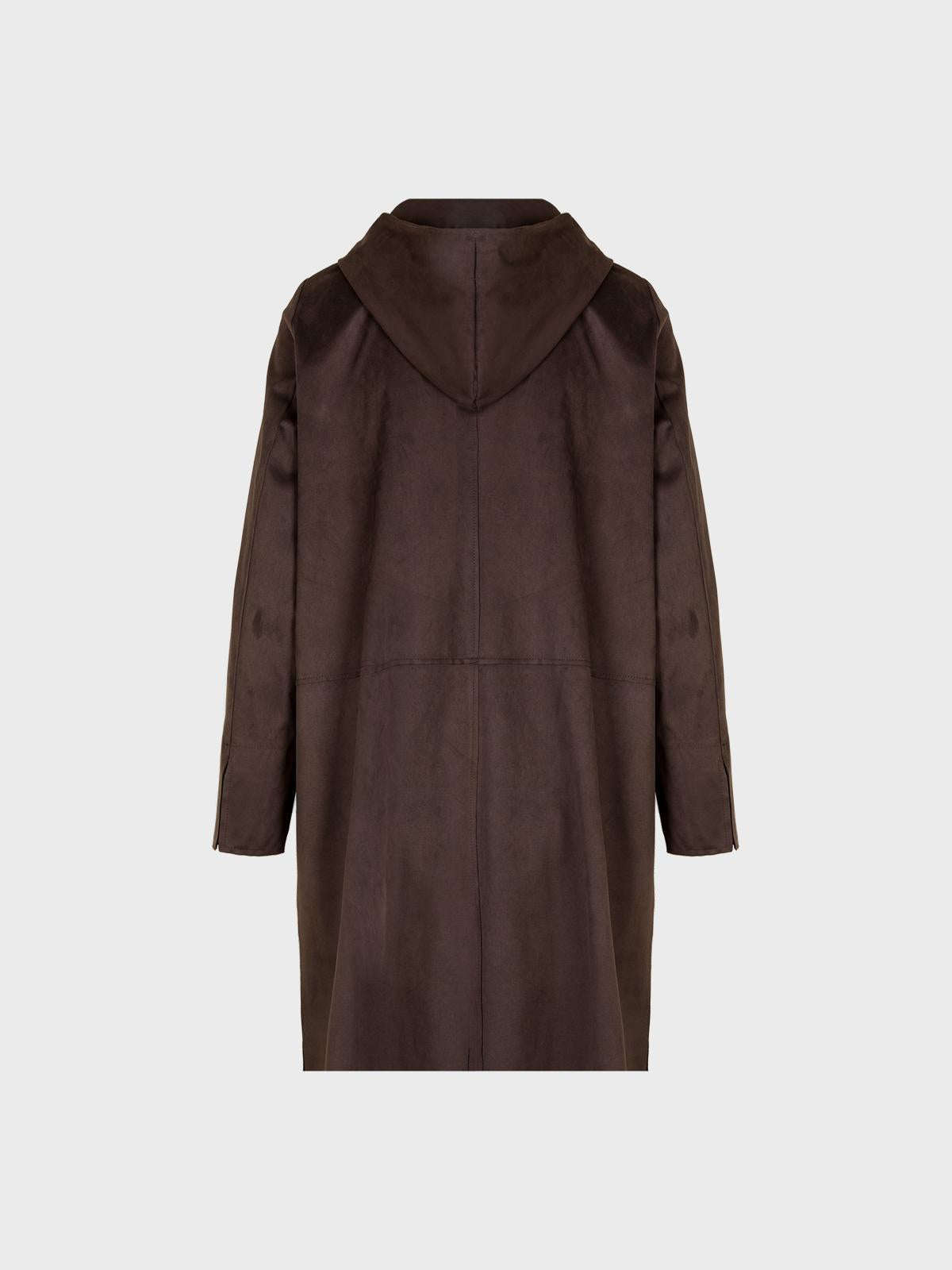 Spolverino in dainetto con cappuccioTasche a toppaSpacchi fondo