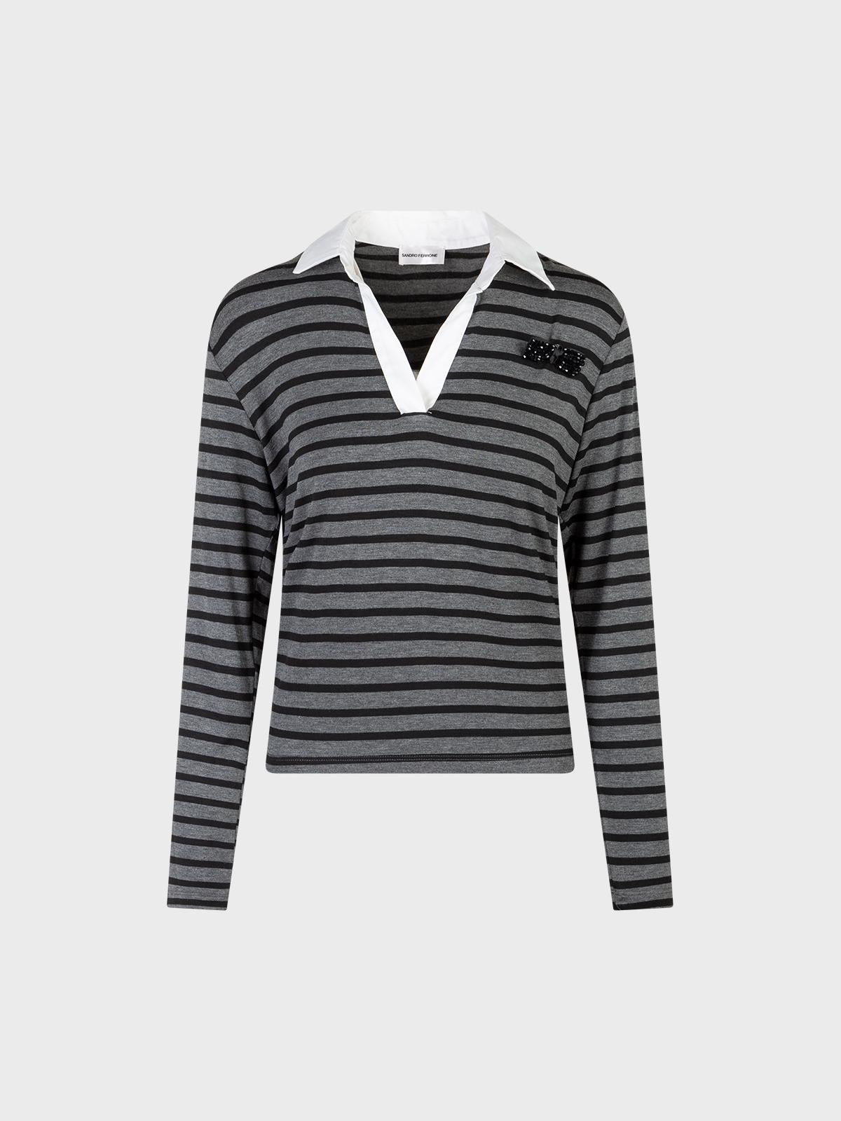 T-shirt in viscosa elasticizzata Maniche lungheScollo polo in cotone