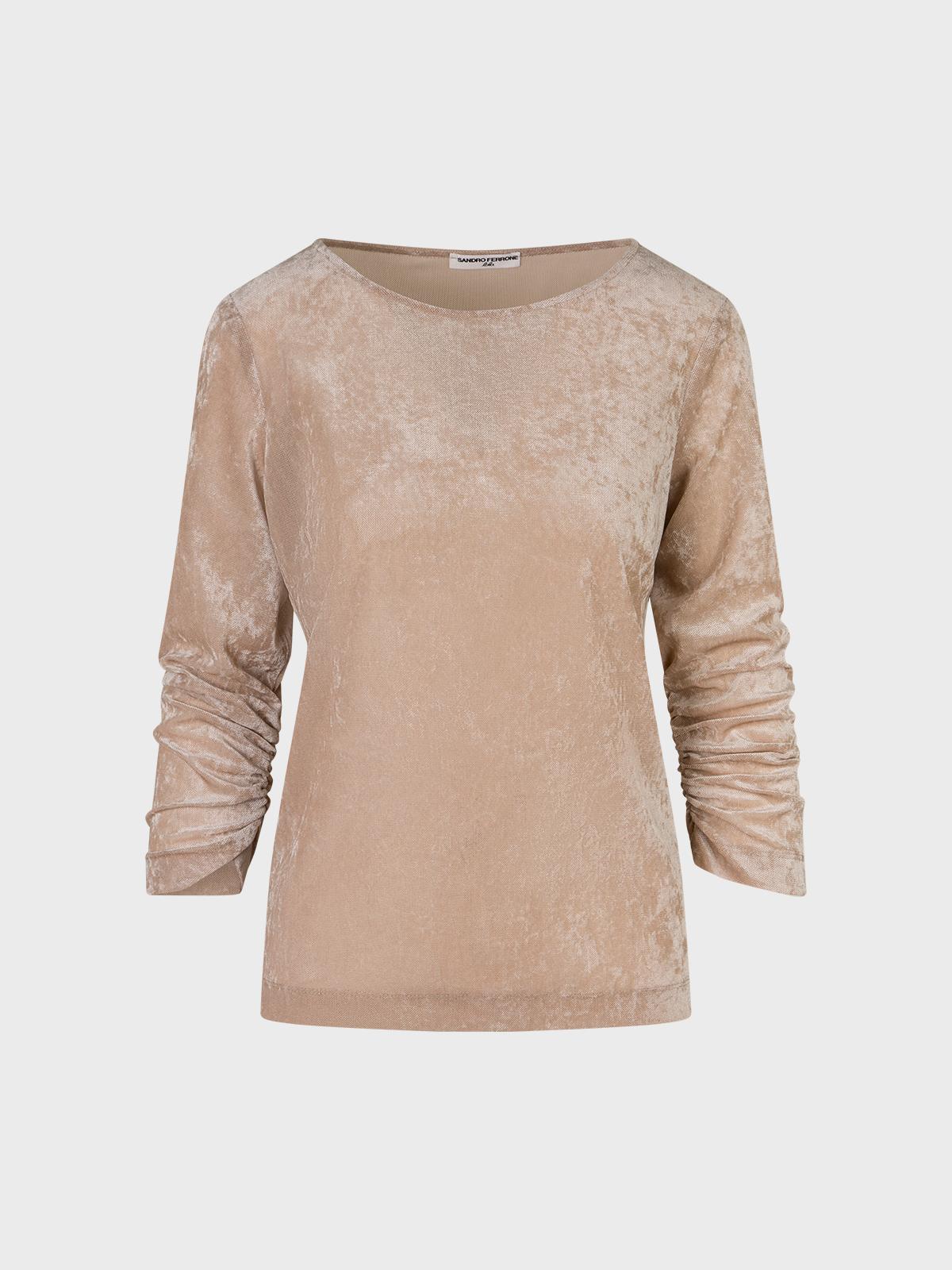 T-shirt in tulle floccato Scollo barchetta Manica 7/8 con arriccio su polso