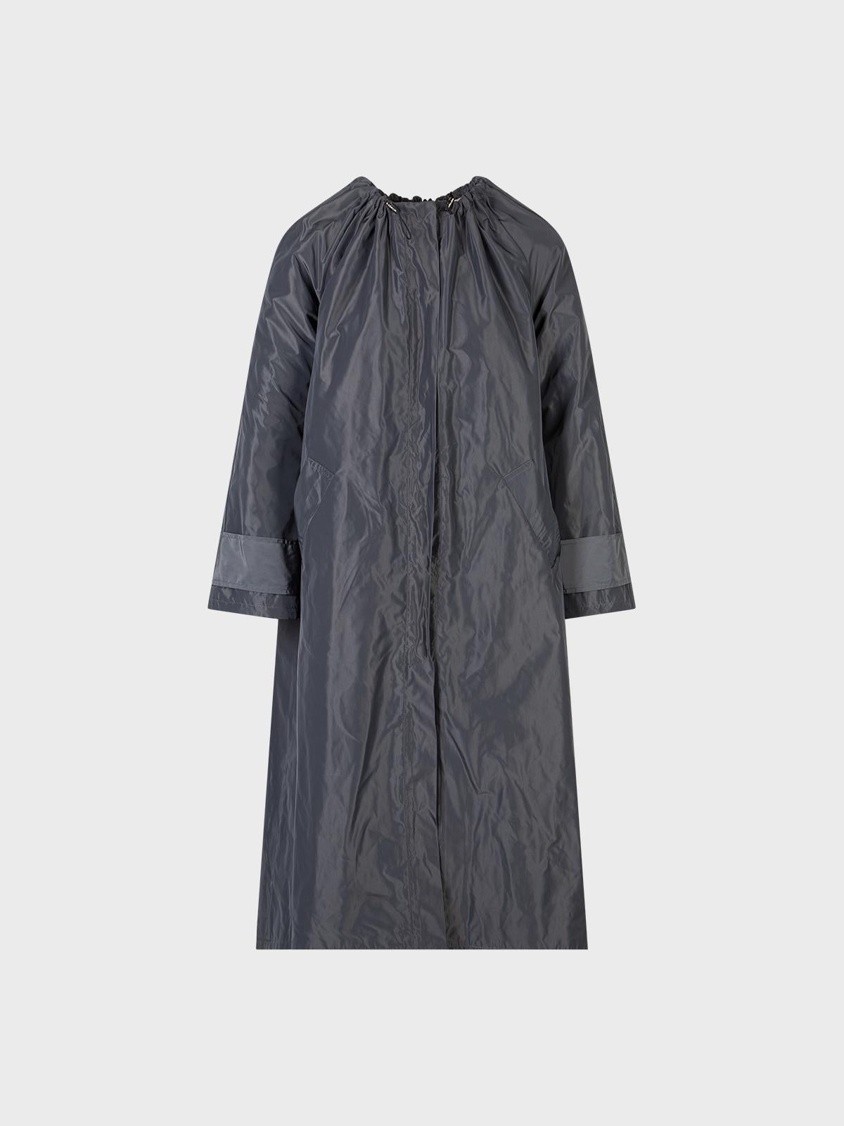 Trench in nylon Scollo tondo con coulisseManiche raglanAllacciatura con automatici