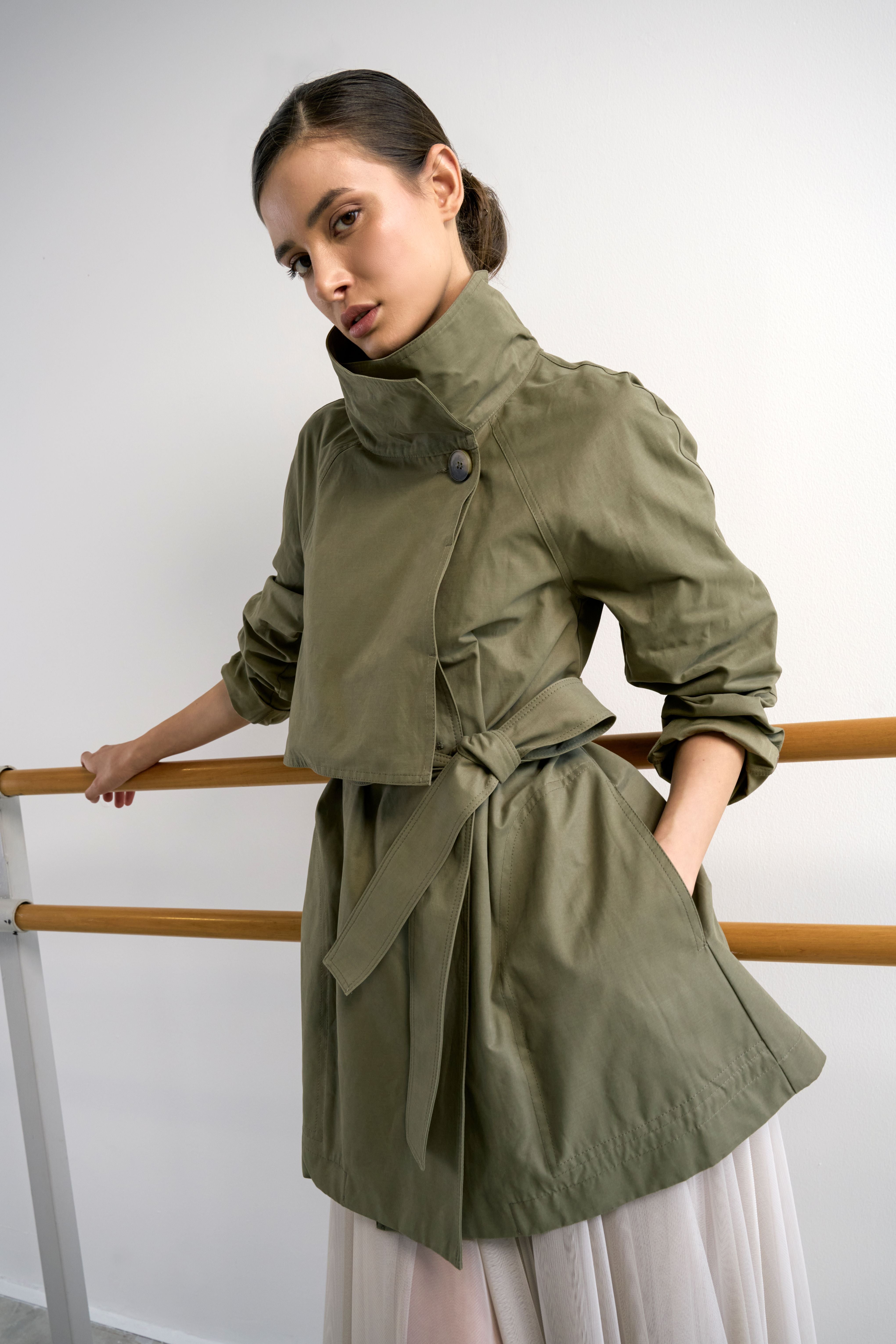 Trench cortoPoly cotone Allacciatura asimmetricaTaglio raglanTasche in cucitura